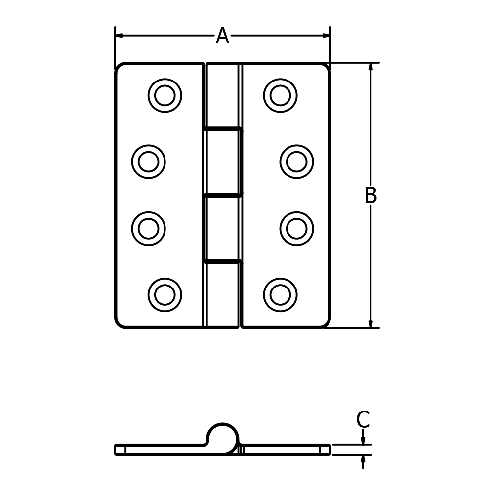 316 Stainless Steel Butt Hinge, 3-1/4″x4″