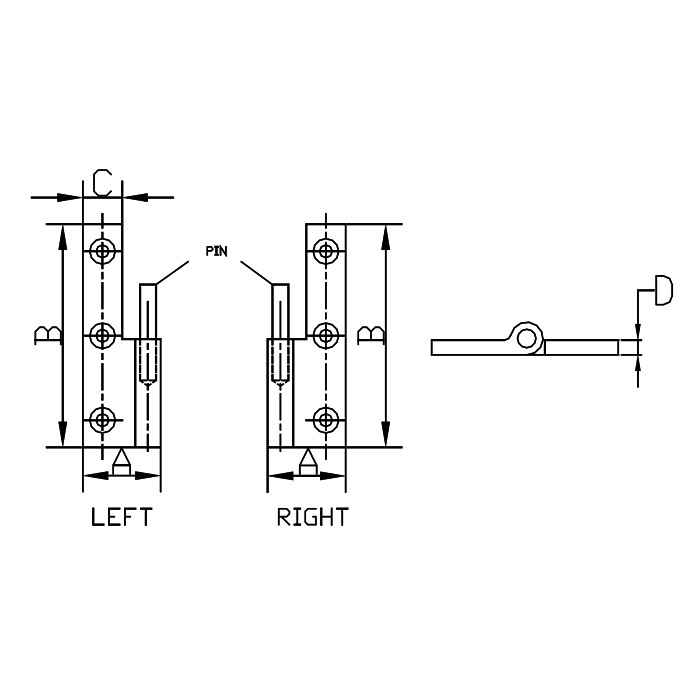 | PART NO. | A | B | C | D | Fastener | Side |