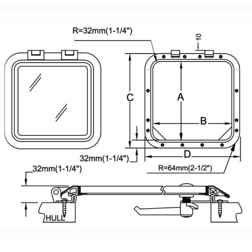 316 SS Formed Low Profile Friction Hinge Deck Hatch | LDH-N