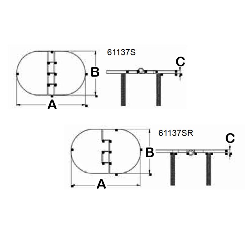 | 61137SR | 4” | 2-1/2” | 3/16” | 1/4”-20 | Barrel Down |