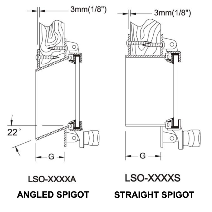 • Custom spigot size “G” available from 1″ – 5″